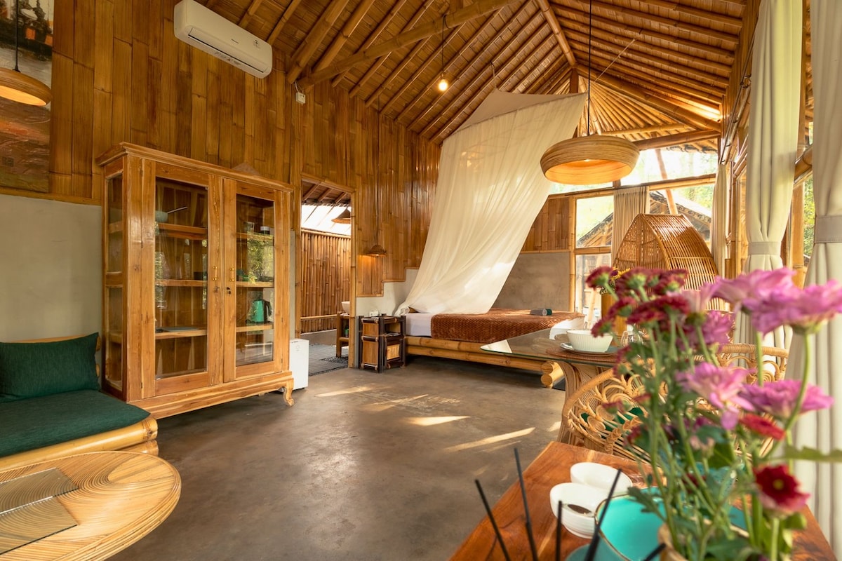 舒适的竹屋别墅,可欣赏丛林和河滨景观