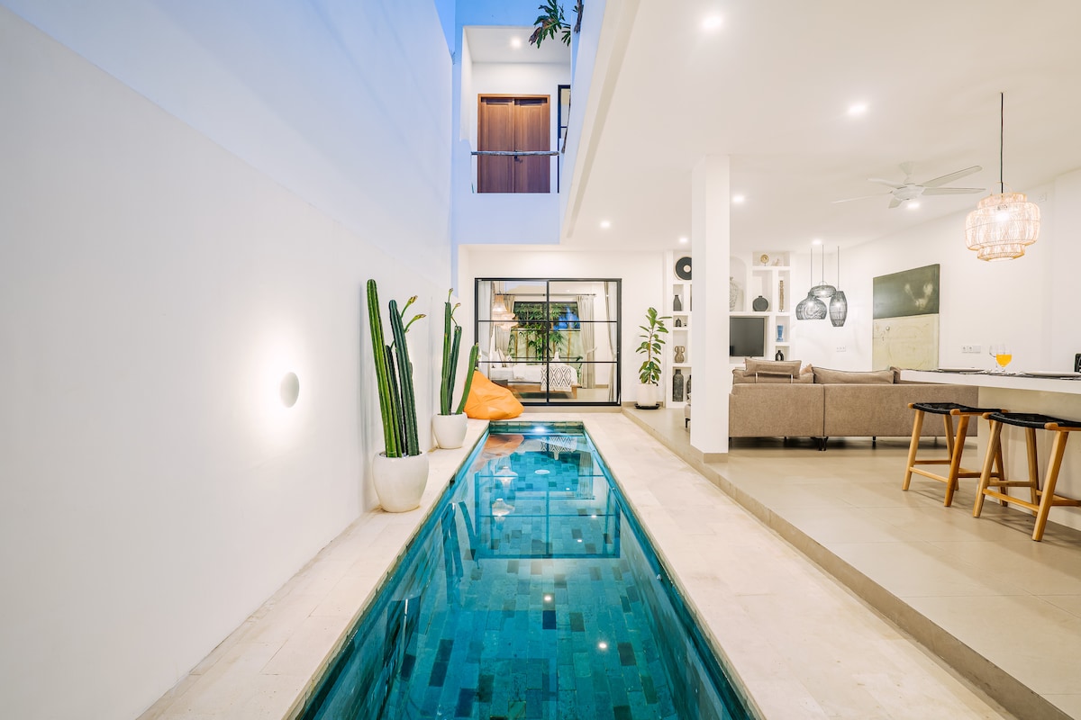 ★ Special free airport pickup —luxury villa steps from Canggu’s famous Echo Beach ☞ Designer villa ☞ Walk to beach, cafes, dining, spas & beautiful boutiques ☞ Surf + private access to the beach ☞ Pool & indoor/outdoor lounge ☞ Full kitchen ☞ AC in all bedrooms ☞ Private maid ☞ Fast Wi-Fi ☞ Free Airport Pickup with 3-night minimum stay 1 min → Echo Beach (swim, surf, cafes) + World Class Waves 1 min → Shelter Restaurant & La Brisa Beach Club 1 min → Baked Canggu’s best cafe