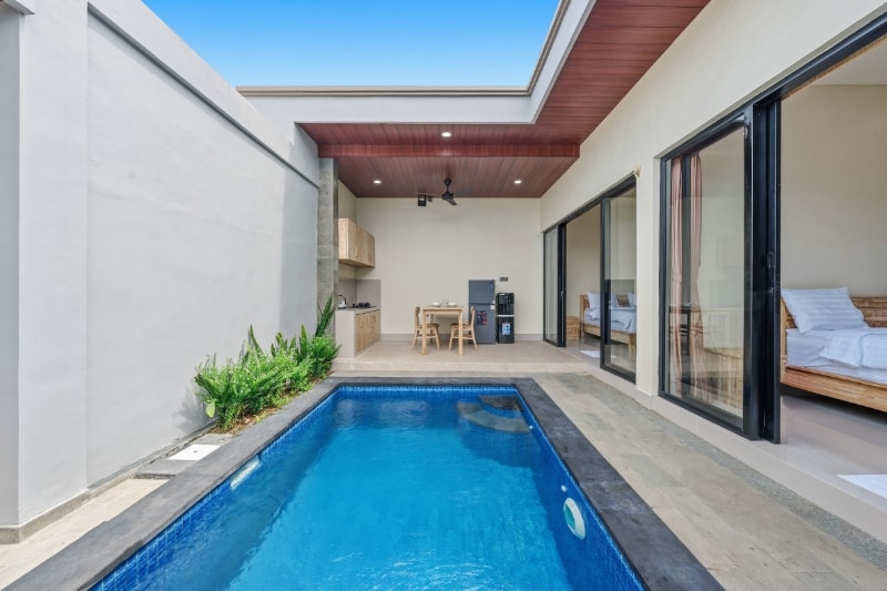 Villa Akuna 1 is a warm and modern 1-bedroom private villa perfect for couples or solo travelers seeking comfort and a touch of modern design. Just minutes from Kedungu Beach and surrounded by local cafés and hidden gems, this cozy retreat blends warm natural tones with a laid-back jungle vibe. With its private pool, sunny loungers, enclosed air-conditioned living room, and fully equipped kitchen, the villa offers a peaceful escape after a day of exploring, surfing, or soaking in the Bali sun.