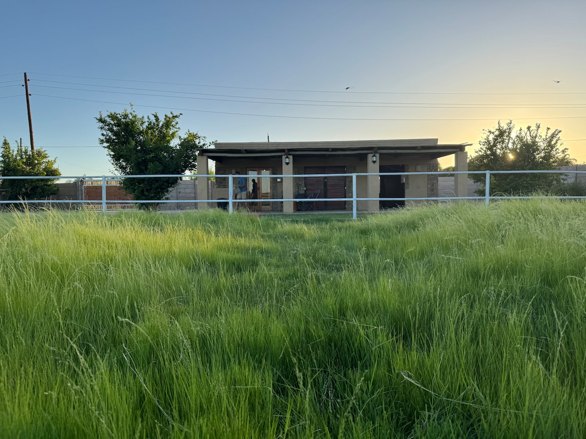 Situated on a working farm in the beautiful "Green Kalahari" overlooking the lush Vineyards. Peaceful is definitely a thought that comes to mind when you enter Mitat Cottage. Escape from the chaos and come relax in the private splash pool while enjoying a barbeque. Mitat was build with the thought of pure relaxation so we decided to not have Wifi or a TV installed just so you can escape from the world. Pre-book a massage in the comfort of the cottage or enjoy a walk in nature.