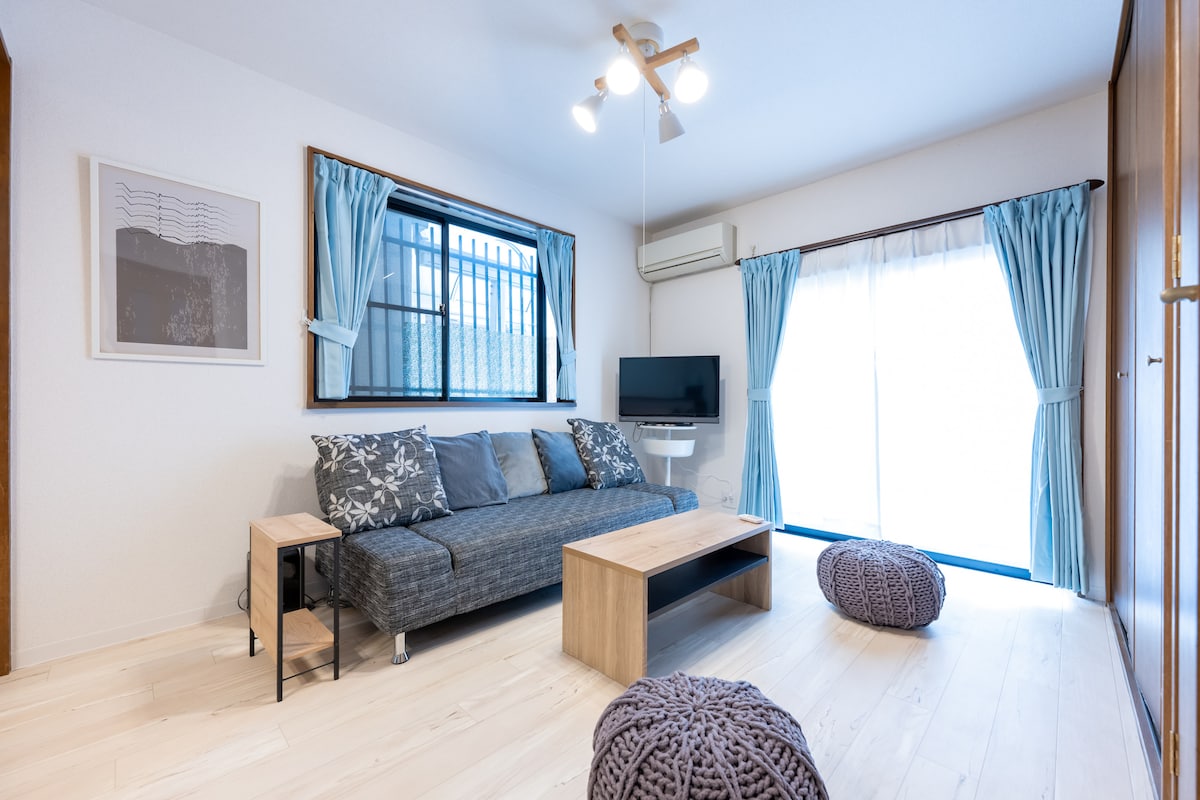 步行5分钟/50平方米/2卧室,木质Japandi私人套房