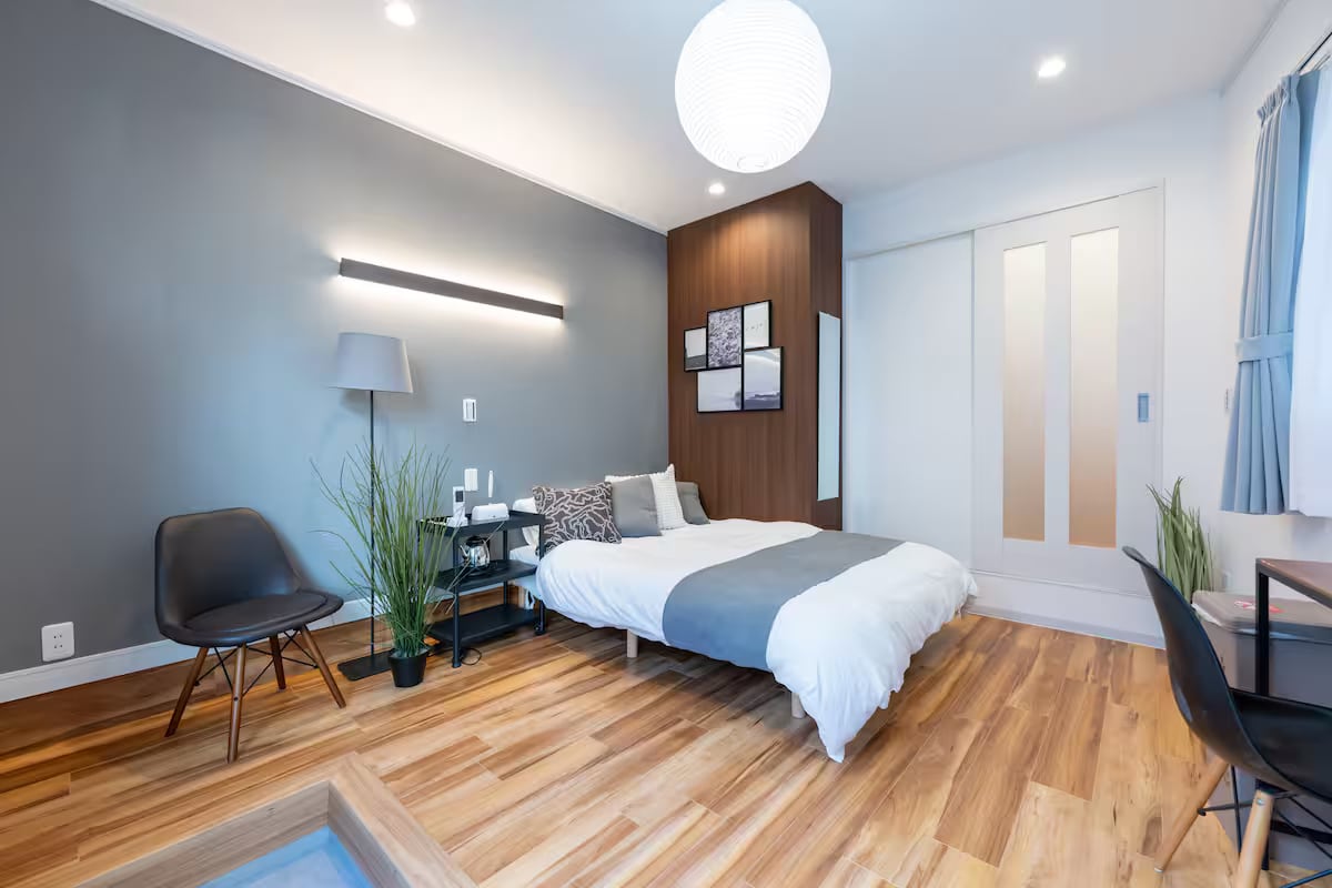 步行5分钟/50平方米/2卧室,木质Japandi私人套房