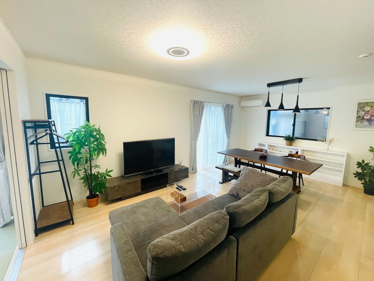绿色环绕的日式私人房源|免费烧烤用品、可携带宠物、距离机场最短25分钟、距离高尔夫球场8分钟
