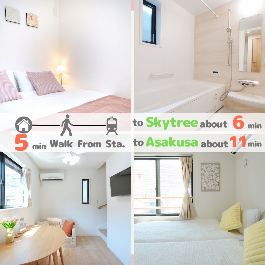 202/车站4分钟,晴空塔附近,直达浅草、上野站、银座、涩谷/免费WI-FI/最多5人