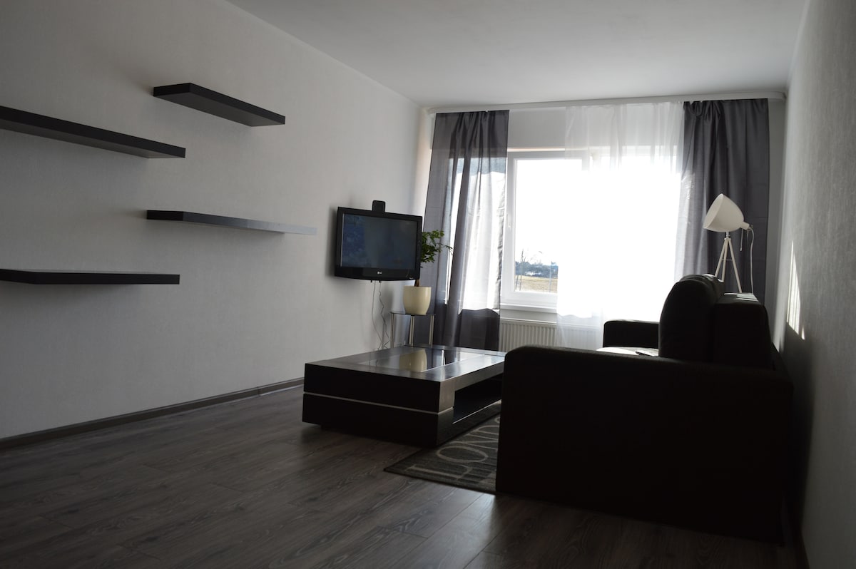 Enjoy a spacious 65 m² 2-room apartment in Baloži, just 15–20 min from Riga center. Fully furnished with built-in closets, Smart TV (Netflix, Tet+), Wi-Fi, and a fully equipped kitchen with tea and coffee. Sleeps up to 4 with a double bed and convertible sofa. Bathroom includes shower, washer/dryer, towels, and toiletries. Surrounded by greenery, Titurgas lake, forest trails, cafes, and grocery shops — perfect for a peaceful stay near the Riga city.