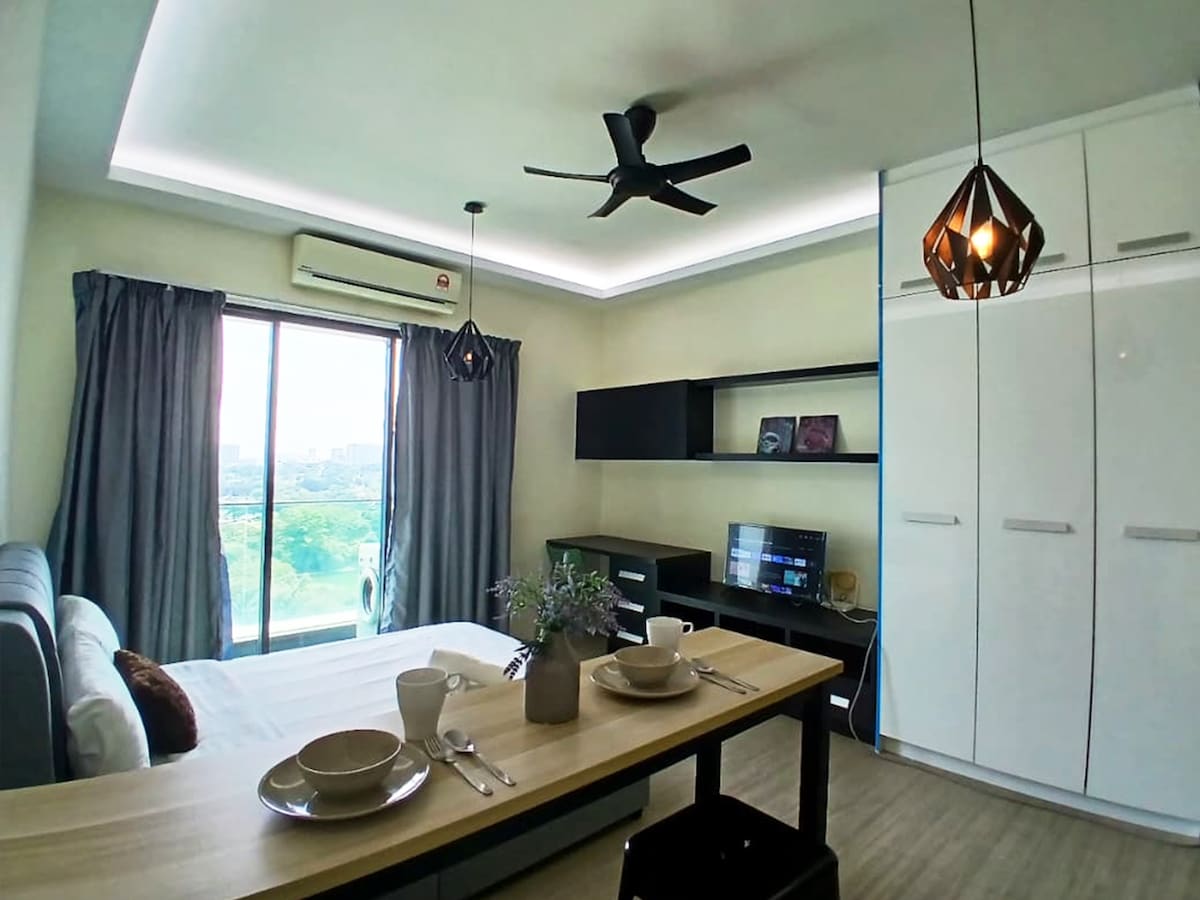 Our cozy studio unit offers a blend of peaceful living with modern comfort. Highpark Suites conveniently located in the heart of Kelana Jaya, PJ near Paradigm Mall, Sunway Lagoon, Lincoln University and UNITAR International University. It has a 3.38 acre of beautiful greenspaces with 1km jogging track, an impressive Olympic size swimming pool, a well equipped fitness gym, BBQ facilities, reading room and much much more. Come and experience it all.