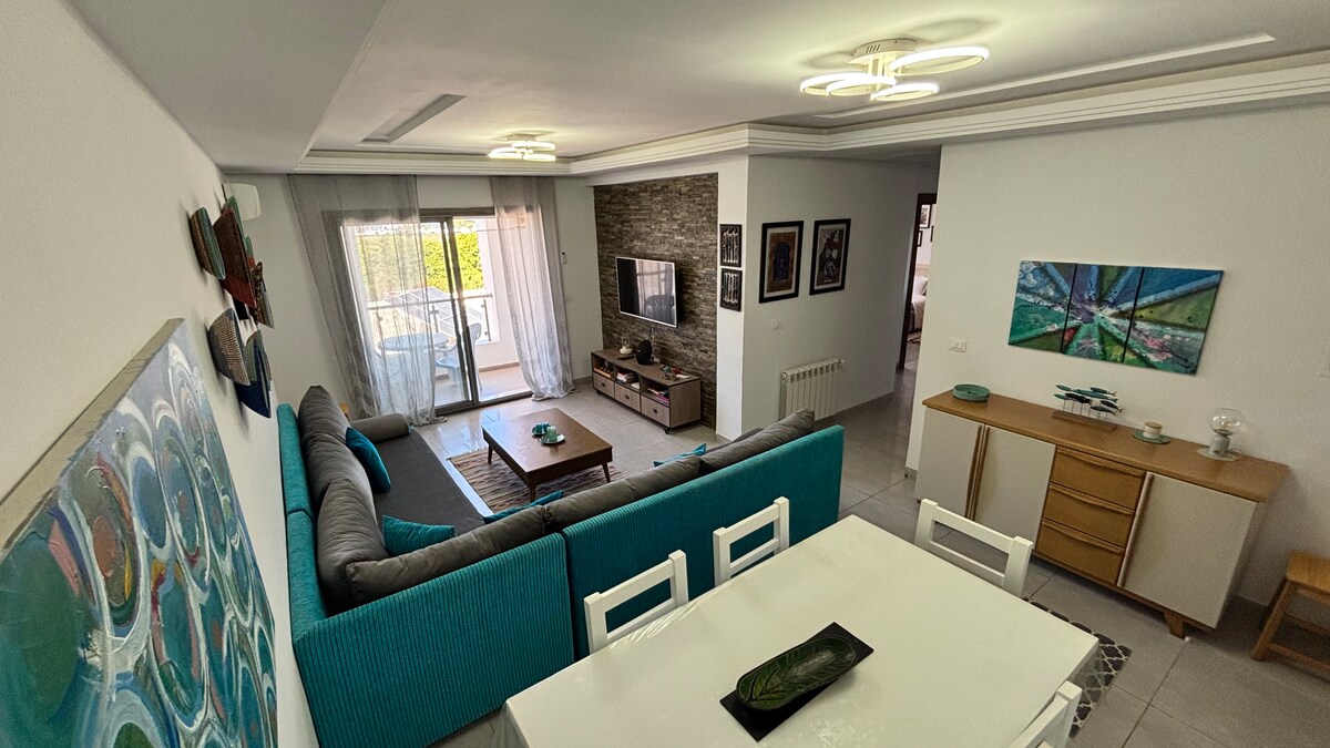 Découvrez le charme de cette appartement lumineux décoré dans un style moderne,aménagé ,équipé .Il dispose d'une chambre à coucher avec un lit double avec matelas,coussins orthopédiques et un placard .une salle de bain avec une douche à l'italienne .En outre l'appartement dispose d'un salon composé de deux canapés avec une cuisine à l'américaine équipé s'ouvrant sur un séchoir et d'un comptoir avec deux chaises .