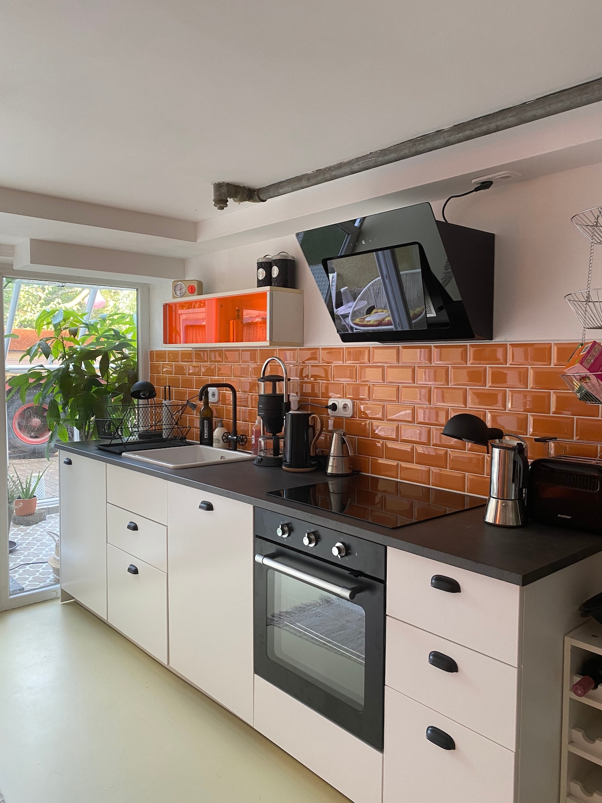 Herzlich willkommen in ARTEna, unserer kleinen Ferienwohnung in Kassel. Die Wohnung hat 39 Quadratmeter und ist gen Norden ausgerichtet. Durch die großen Fensterfronten im Wohn- Esszimmer ist der Raum lichtdurchflutet und ihr habt einen wunderschönen Blick in den Garten. Die Küchenzeile ist mit allem ausgestattet. - Geschirrspülmaschine - Herd mit Backofen - Dunstabzugshaube - Kühlschrank mit Gefrierfach Die Deckenhöhe in diesem Raum ist hier nur 1,95 m. An diesen Raum schließt das Schlafzimmer an. Das Schlafzimmer hat ein 1,60 m breites Bett und einen begehbaren Kleiderschrank. Bettwäsche und Handtücher sind mit dabei. Im Schlafzimmer ist der Fernseher und ein kleiner Schreibtisch. Vom Schlafzimmer kommt ihr in das Bad, welches über eine Dusche verfügt. Im Außenbereich steht ein kleines Glashäuschen mit Pflanzen und Sitzmöglichkeiten. Vor der Wohnung ist eine schöne Terrasse mit Gartenmöbeln. Die Wohnung befindet sich in Kassel/ Kirchditmold. Hier seid ihr mitten im Grünen in direkter Nähe zum Wald. Ihr könnt zu Fuß zum Bergpark Wilhelmshöhe laufen. Es gibt aber auch eine gute Anbindung mit öffentlichen Verkehrsmitteln. Der vordere Westen mit seinen gründerzeitlichen Bauten ist vier Straßenbahnhaltestellen entfernt. Hier ist es rund um den Bebelplatz besonders schön und vielfältig. Einkaufsmöglichkeiten für Lebensmittel könnt ihr zu Fuß erreichen. Gerne geben wir euch Tipps, was ihr alles in Kassel und der Umgebung erleben könnt.