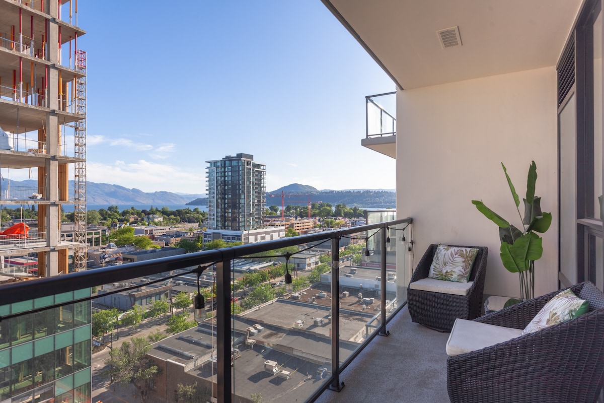 Enjoy this bright 2-bed/2-bath condo in the heart of Kelowna. Sleeps 6 with a king, queen, and queen sofa-bed. Cook in a full kitchen, relax by the gas fireplace, stream Netflix on the large TV, or sip morning coffee on the balcony. A very walkable neighbourhood with nearby parks, beaches, wineries, breweries, shops, and restaurants. Free self check-in, secure parking, in-suite laundry, central heat/air, high-speed WiFi, and no cleaning fee! Big White Ski Resort less than an hour's drive away.