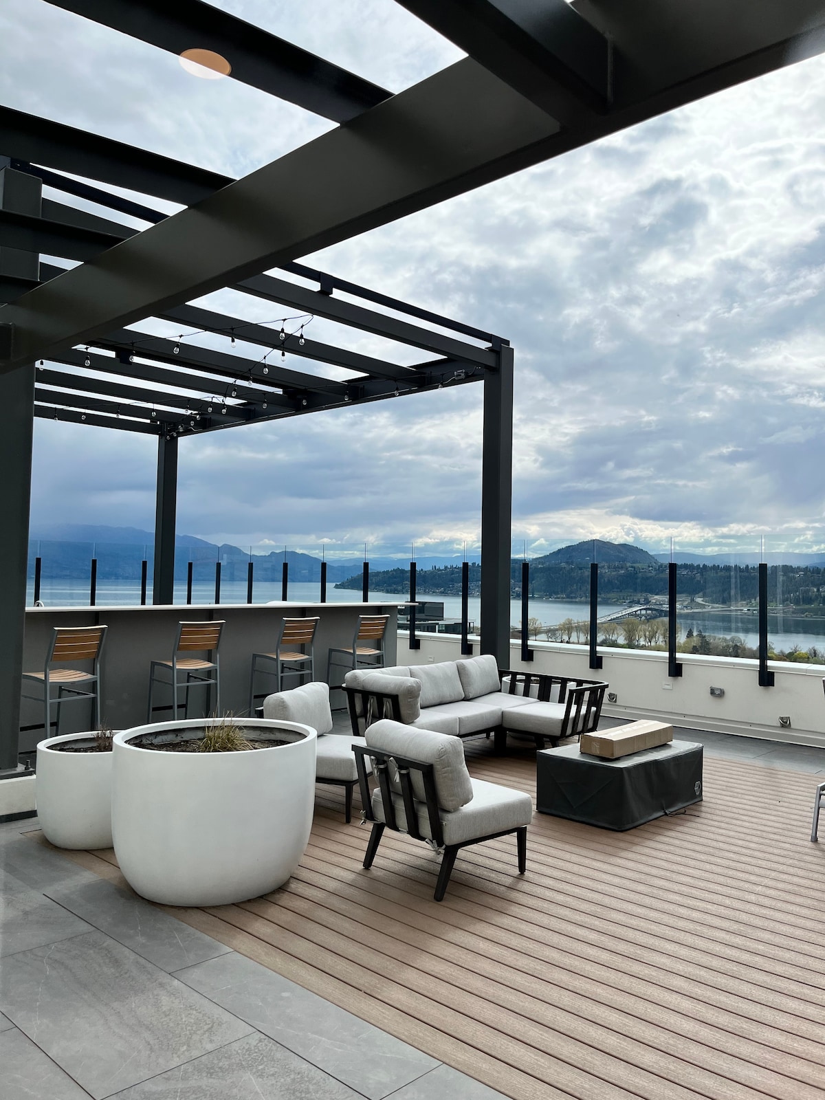 Welcome to The Royal Kelowna. This 730 sq ft (approx.) luxury suite in downtown Kelowna backs directly on to Okanagan Lake. The suite includes a gourmet kitchen, dining area, living room, gas fireplace, and in-suite laundry. Relax in the rooftop infinity pool and hot tub with sweeping lake views of the valley below — the perfect ending to a day of exploration around the vibrant Okanagan Valley. Nightly parking charge of $24 for a single space.