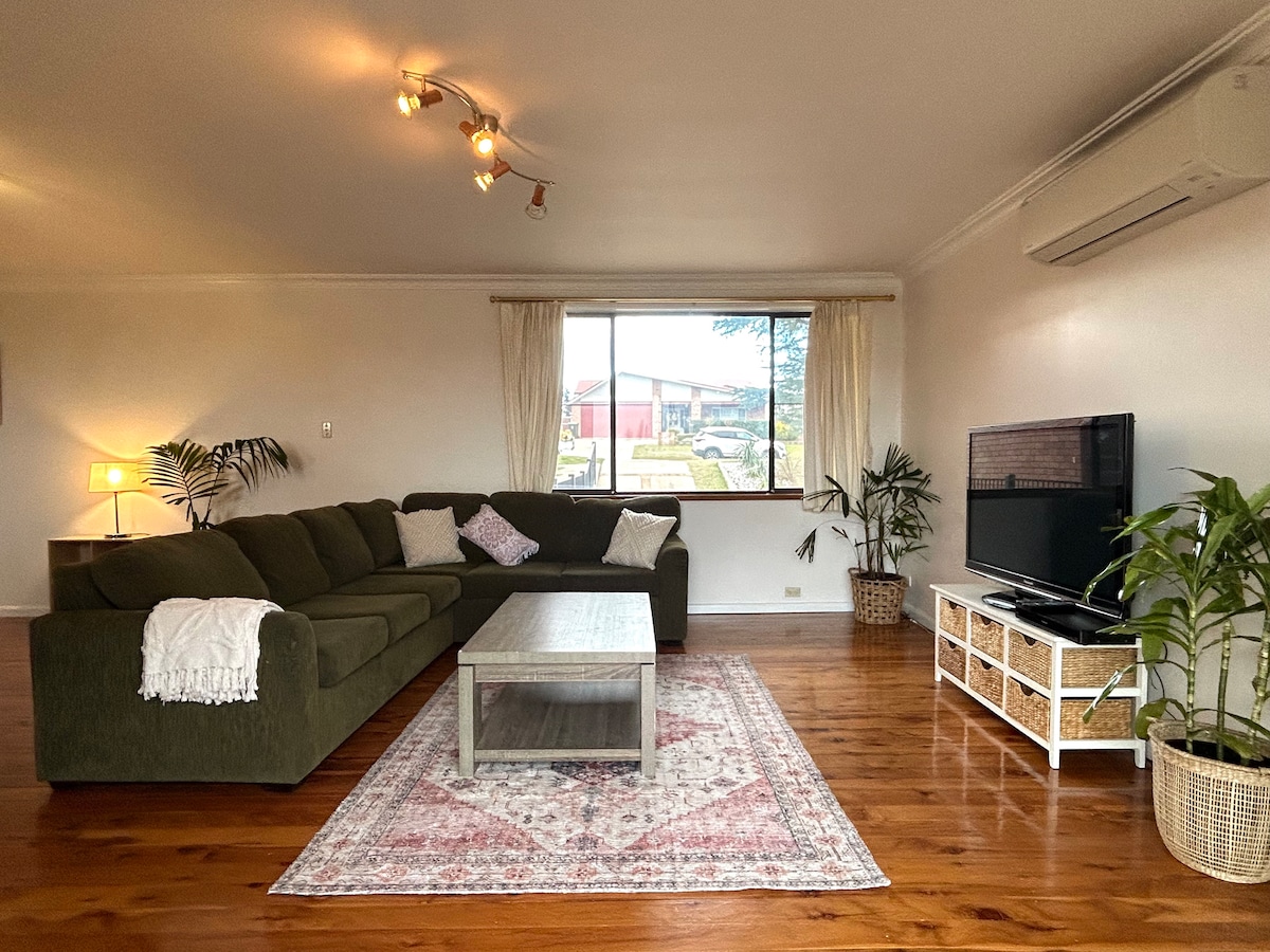 Relax with the whole family at this peaceful place to stay. Located in quiet residential suburb, this 3 bedroom house generous sized bedrooms. Bedroom 1 has a king bed and ensuite, bedroom 2 has a queen sized bed and bedroom 3 has 2x king single beds. The house offers an outdoor dining set on the patio opening onto a large grassed backyard for children to play. There is even a swing set for your little ones. The double garage is available for use during your stay and free wifi.