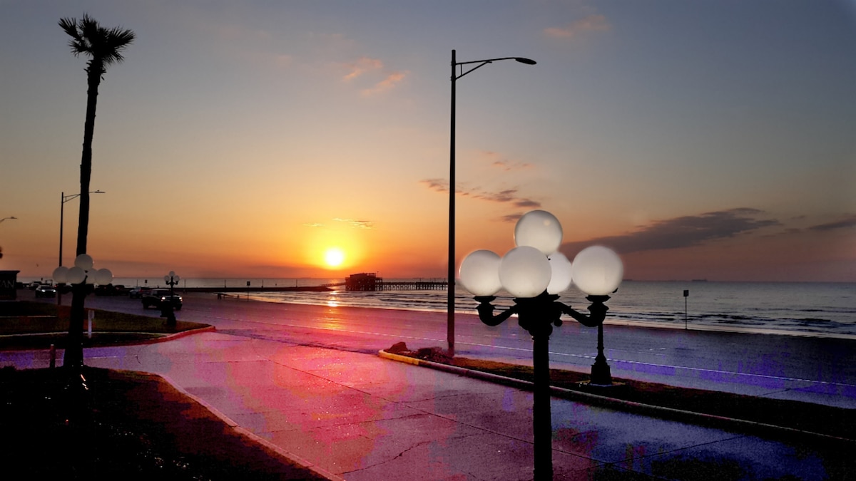 This newly renovated Beach front condo is the perfect place for your friends and family to stay in Galveston. The unobstructed view of the ocean from your private top floor balcony is breathtaking. The interior is modern, spacious and full of natural light. Intentional design, new renovations and simple pops of color make this space calming, clean and inviting. You cannot beat this location in regards to proximity of attractions and just a walk across the street to the beach!