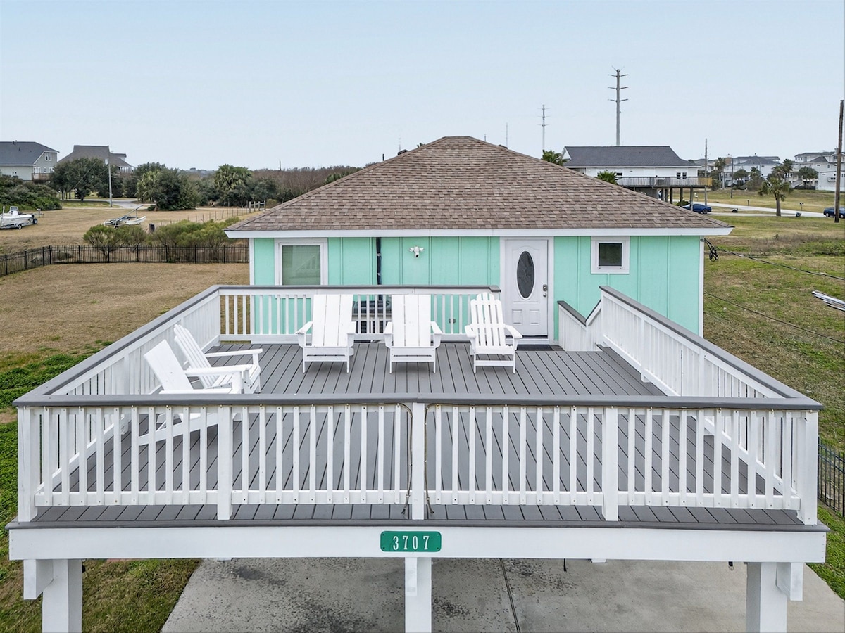 You'll have a great time at this comfortable retro style beach house! Ocean views as well as Pleasure Pier! Restaurants right out your front door. Walk to “The Float”, “Fish Tales”, “Bubba Gump”, “The Spot” and more well known hot spots in Galveston. Make a day at Moody Gardens, Shop The Strand or plan a guided fishing trip…Conveniently Golf carts can be rented right across from the house. There is not a more perfect location around town! Just added another new rental 2 doors down!