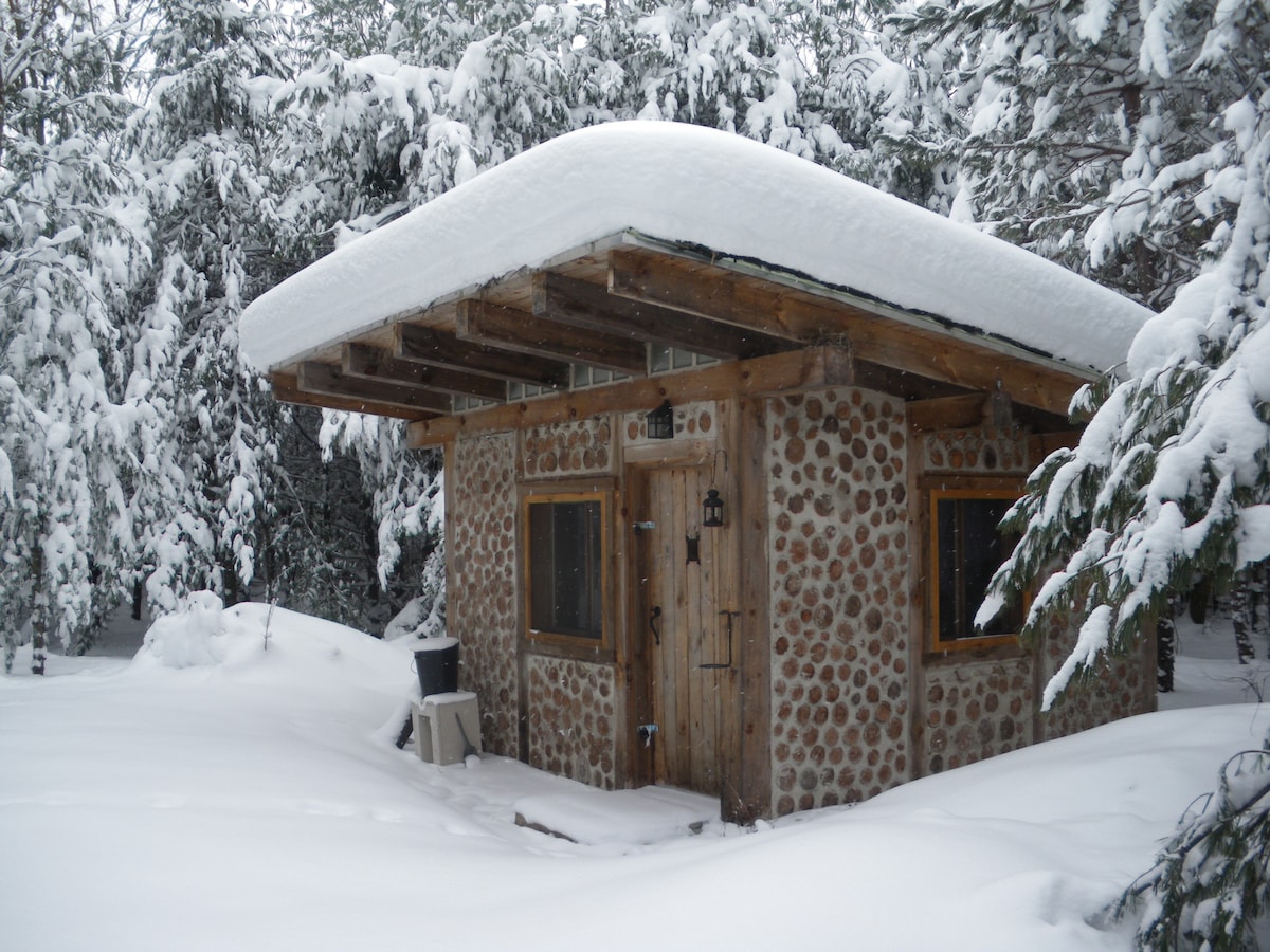 Relax in a charming cordwood cabin on an off-grid property powered entirely by solar energy. Enjoy exclusive use of 50 acres of varied woodlands with over 4km marked & maintained nature trails (loaner snowshoes provided!) and special features like a SoundForest, a meditative walking labyrinth, plus a sauna made of local cedar... it’s like having your own private park! There’s even an option ($) to have a breakfast basket brought out.