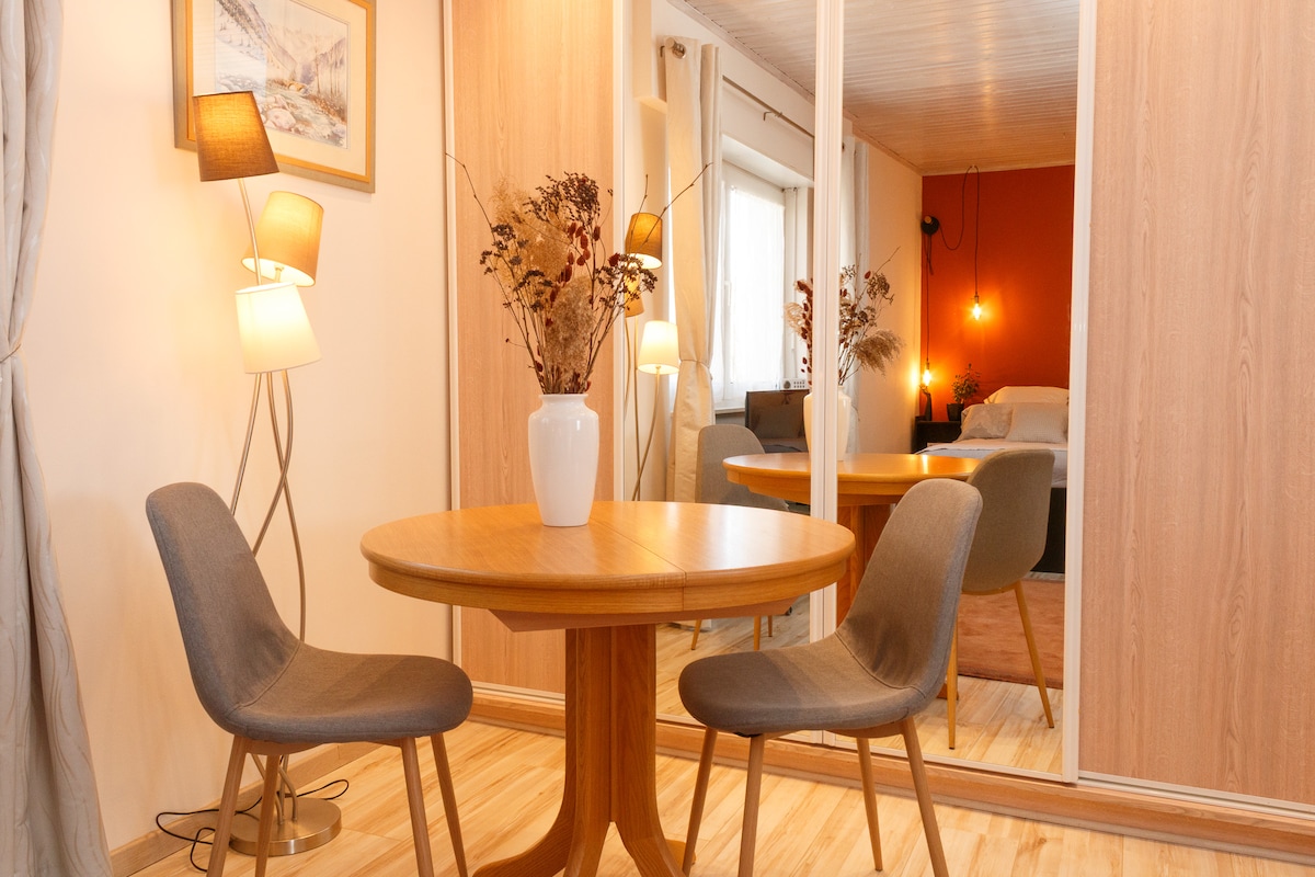 → Discover "L'INDUS," a chic industrial-style apartment in Mulhouse, ideal for couples, families, or professionals → Just steps from the CITY CENTER and TRAIN STATION, close to public transport (tram, bus), Germany, Switzerland, the Vosges, and the Wine Route → SELF CHECK-IN, 2 COMFORTABLE BEDS (double bed + sofa bed), FREE PARKING → Fast WIFI, FULL HD TV, AMAZON PRIME, Super Nintendo, fully equipped kitchen → WELCOME PACK with local tips included → Book now for a UNIQUE and AUTHENTIC stay!