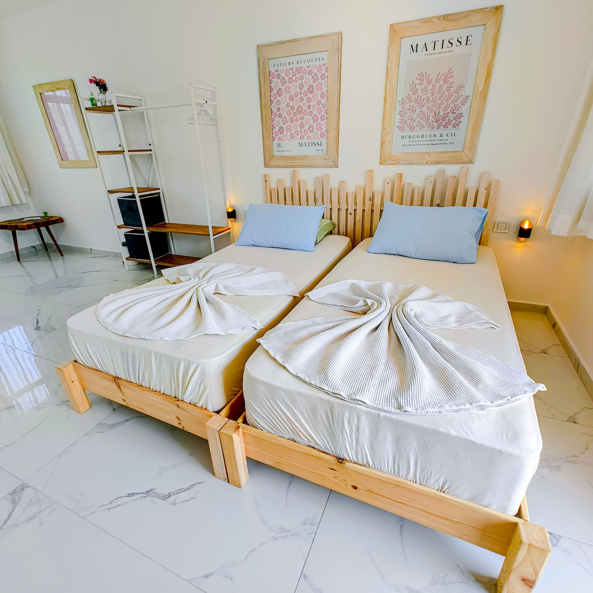 In Çıralı, we have separate rooms within walking distance to the sea for our guests. If you wish, you can stay in a garden with a hammock where your child or pet can also stay. You can relax on the swing or lie down on a sunbed and enjoy the tranquility. In the mornings, you can ride our bikes to the sea and return home to have a breakfast suitable for a vacation with homemade pastries and fresh tea. With air-conditioned rooms and a private bathroom, you will feel at home.