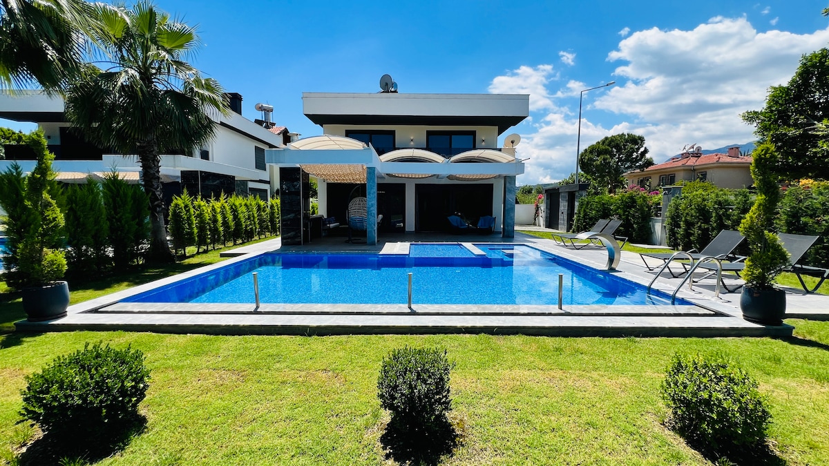 Ultra lüks dizayn edilmiş özel havuzlu özel otoparklı sauna jakuzili 5 yatak odalı merkezi konumda plaja sadece 900 Mt uzaklıkta marketlere 50 Mt uzaklıkta benzersiz ve huzur dolu sakin havuz tamamen mahremiyet etrafta komşular tarafında görünmez ve kendinizi sadece huzur ve sakin bir tatil yapmak isteyen misafirlerimizin Premium park markası olan villamızda huzur dolu bir tatil yapmaya bekleriz