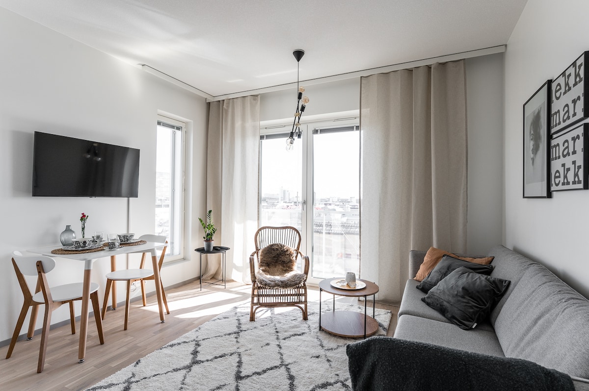 位于Toppilansaari的美丽单间公寓,带车库。