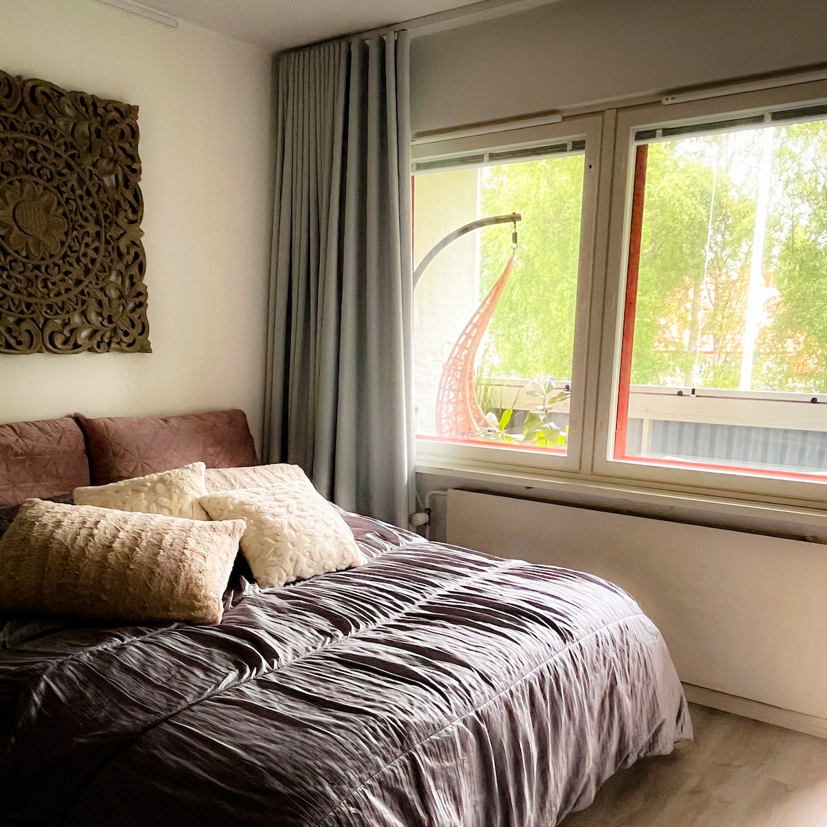 Kolmio Laanilassa sijaitsee hyvien liikenneyhteyksien päässä. Asunnossa on oma sauna, piha- alue, terassi ja autokatospaikka. Leikkikenttä on myös aivan asunnon takapihan vieressä. Asunto on remontoitu ja tyylikkäästi sisustettu uusine kodinkoneineen. Täydellinen astiasto ja liinavaatteet sekä pyyhkeet löytyvät myös asunnosta. Asunnossa on lisäksi vauvan matkasänky varusteineen ja syöttötuoli. Asuntoon pääsee kirjautumaan kätevästi älylukon koodilla. Asunnossa on myös viilentävä ilmalämpöpumppu.