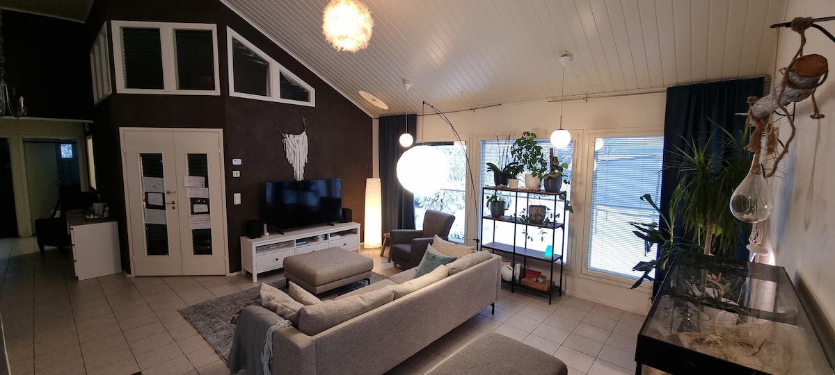 If you are looking for a place next to river and nature this is your target! This cozy house built on 1970's suits really well for families (5 bedrooms, kitchen, sauna, bathroom and 2 toilets). The whole house is in your free use. The river is only 18 meters away from the house. We are not offering luxury apartment but instead something better. We offer cozy, spacious and relaxing oldfashion countryside house with excellent hiking, fishing, berry-picking and ice fishing possibilities.