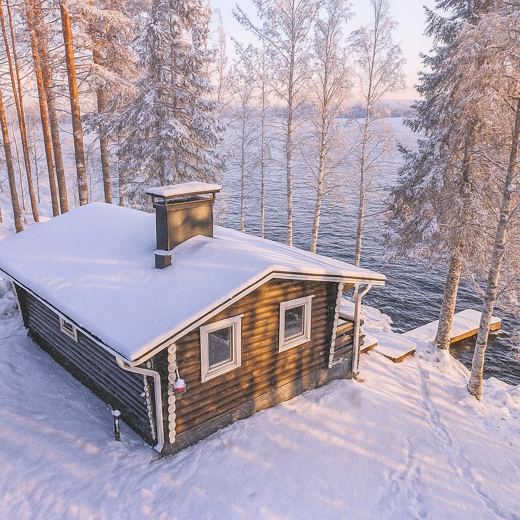 Enjoy Lapland's nature and lovely sauna in privacy. Accommodation and experiences in same place. Modern cottage (2023, 48m²). Two frame mattress beds and two extra beds from bedsofa, also good for adults. All the beds in same space. See the wonderful landscape and northern lights from frozen lake or through large windows. Outdoor sauna is heated once during the visit. Swimming hole in ice and fireplace outside in use. Find us ig: @scandinavian.lakesidecottage