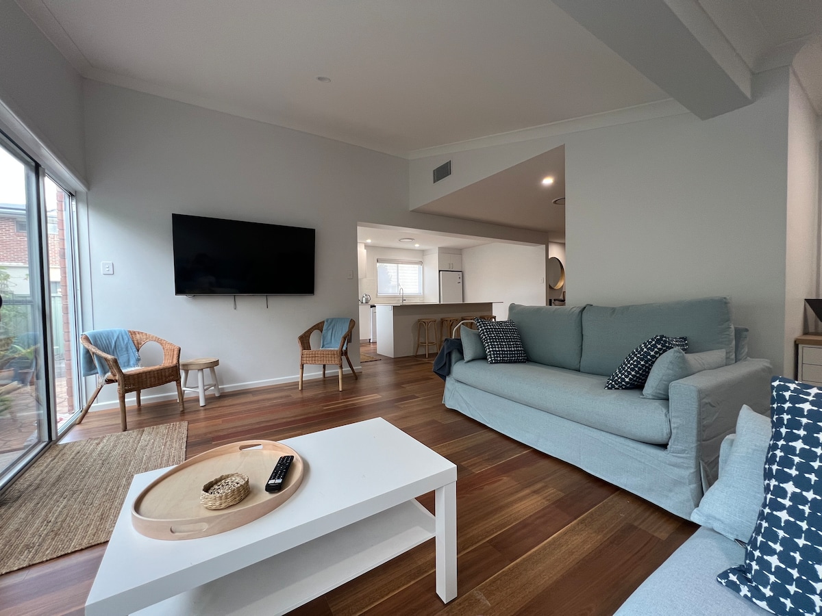 Welcome to Saltwater House! A feeling of immense relaxation washes over you, the minute you step into this home, where you are greeted with the sound of the ocean, while feeling the sea breeze coming over the trees. Located directly opposite the beach access to Trial Bays ‘Front Beach’, you can drop your bags and walk your toes to sand in mere moments, cooling off in the tranquil turquoise water the area has to offer.