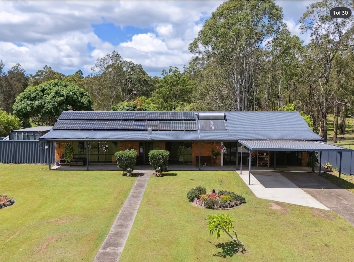 Experience absolute peace and tranquillity in brand new one bedroom very modern cottage. Located at Maha Farm, a certified organic macadamia farm surrounded by bush-land, you will feel miles away from the busyness of everyday life. An easy drive to Bellingen, Coffs Harbour, Nambucca and Macksville. You'll enjoy the beautiful views of nature and wildlife from the large outdoor deck. We’re about 20 minutes from the nearest supermarket at Nambucca Heads, so it’s advisable to bring supplies.