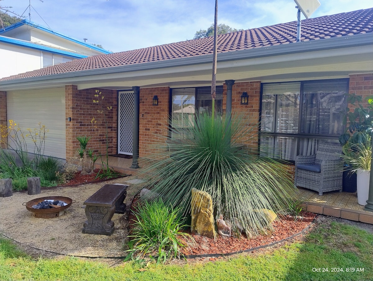 Sunny Coastal Getaway – Your Perfect Summer Escape! ☀️ Enjoy the best of summer in this pet-friendly retreat with a private entrance, fenced yard, and A/C in both the living room and bedroom. Relax in your private hot tub or by the fire pit under the stars. Just 750m to pristine beaches for swimming, surfing, fishing, or kayaking. Walk to cafés, the pizza van, or the local tavern. Nestled in peaceful Valla Beach, perfectly located between Sydney and Brisbane for a relaxing coastal stay.