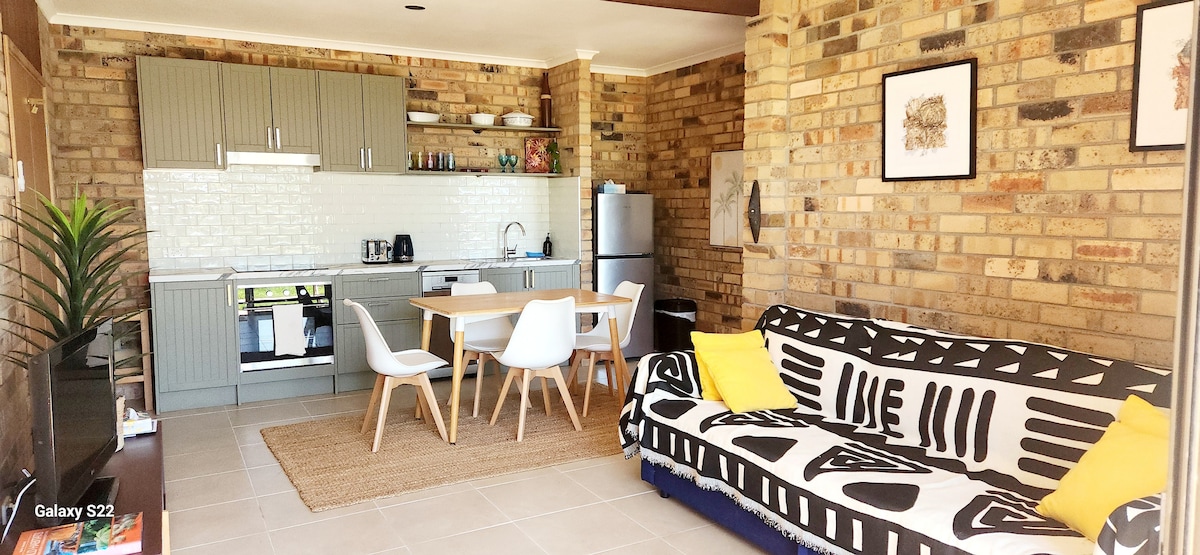 Kick back and relax in this calm, luxurious space. Enjoy sitting on the deck and watching the native birds and bush - all within an 8 min walk to beautiful Valla Beach! The beautiful deck and outdoor space is a haven to BBQ, entertain and unwind after a day fishing, surfing and exploring. Visit one of our great cafes or tavern. Our backyard birds and wildlife include: kookaburras, lorikeets, king parrots, black & white cockatoos, kingfishers, tawny frog-mouth. Kangaroos are frequent visitors.