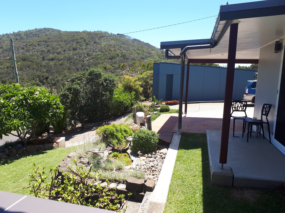 Our private studio apartment is situated underneath the main house with private access through the gardens. Valla Beach is quiet and the beaches unspoilt. My husband and I live upstairs with our miniature schnauzers George and Hector who also share the garden. This is an ideal weekend retreat or beach holiday as we are an 8 minute walk to the cafes, beaches and tavern . There are several walking tracks through the forest close by and a short drive to Jacks Ridge mountain bike trail.