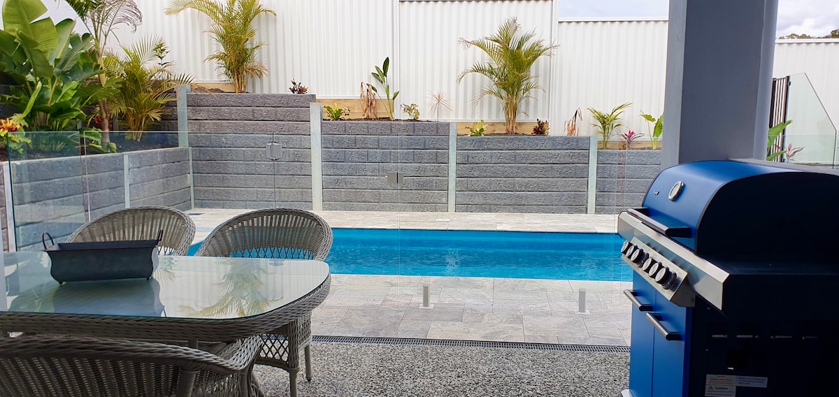 Self check-in, and private. This stand-out accomodation sits on a gentle hilltop offering a vista to many beautiful sunsets, a dam in the distance and majestic gumtrees and forest walking trail beyond. It is located just two minutes off the Pacific Highway, and only 10 minutes to Kempsey and 25 minutes to Port Macquarie. It comes with Wifi, TV and Netflix, reverse cycle air conditioning, built-in robes as well as an in-ground swimming pool, heated spa and under-cover allocated parking.