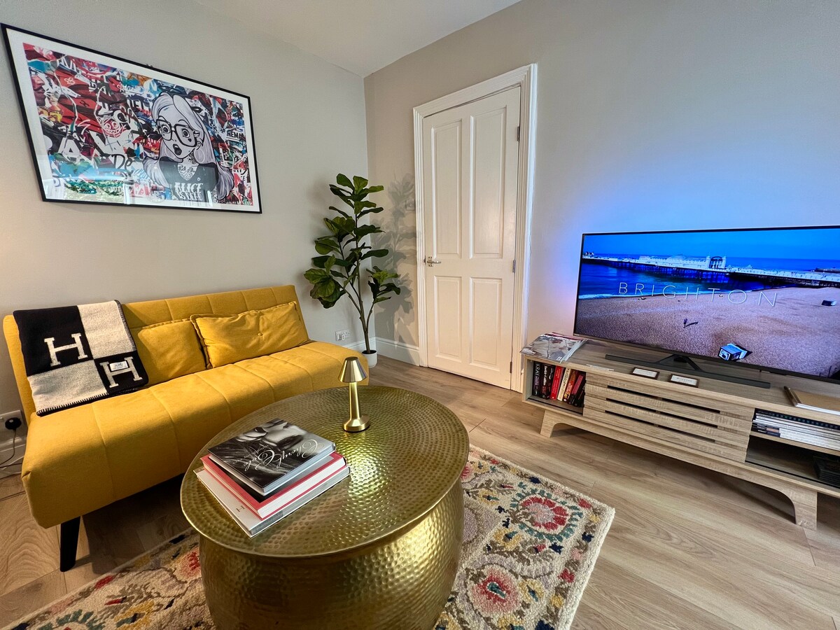 A newly refurbished studio apartment in Kemptown. Situated a 2 min walk to the beach & Soho House. This secluded basement apartment which is situated off the busy St James Street has been refurbished to a high standard to included a large open plan kitchen area, lounge sitting room & open plan raised double bed with ample storage. This is a perfect spot to explore all that our City has to offer. Bars and restaurants a plenty on your doorstep. Note limited mobile signal but can connect to WiFi.