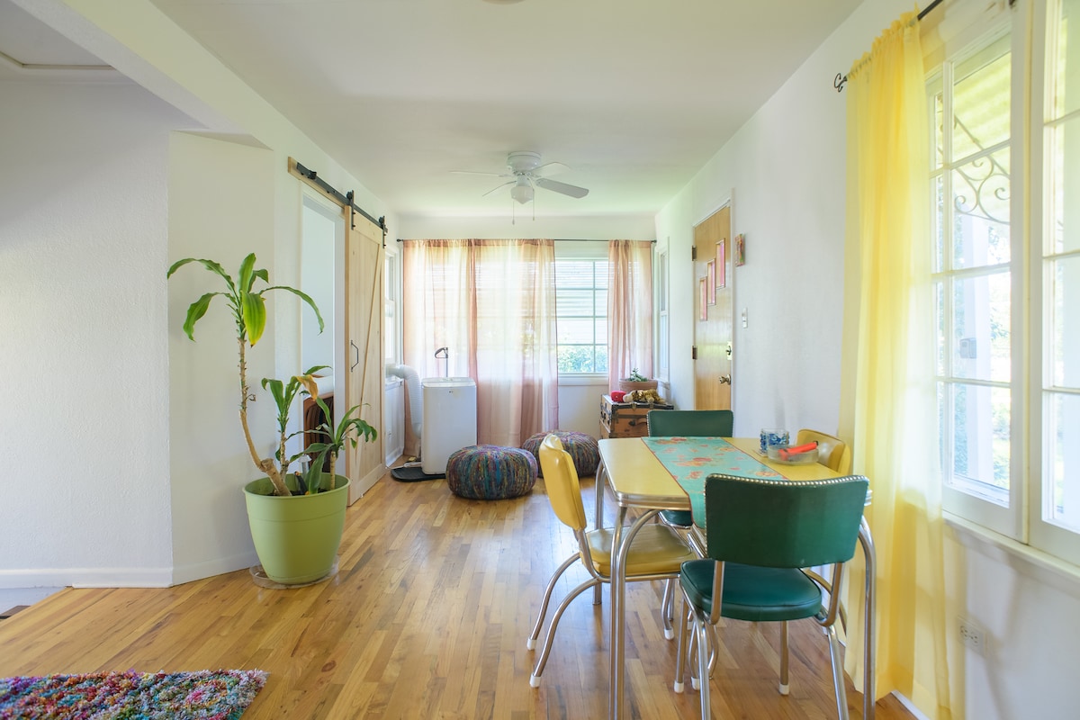 Take it easy at this self-contained getaway. Entrance at side of house, combination lock (which locks by itself after 60sec). Perfect for one, could fit two snugly if they share the twin bed. Low (6’ 2”)ceilings. Low shower. The plumbing rumbles when the pump runs. Outdoor areas are the only shared areas. Family members may go out the side door at times. The unit is pet friendly, you can bring your animal. If you are allergic to pets/are over 5’10” the unit might not be a good fit.