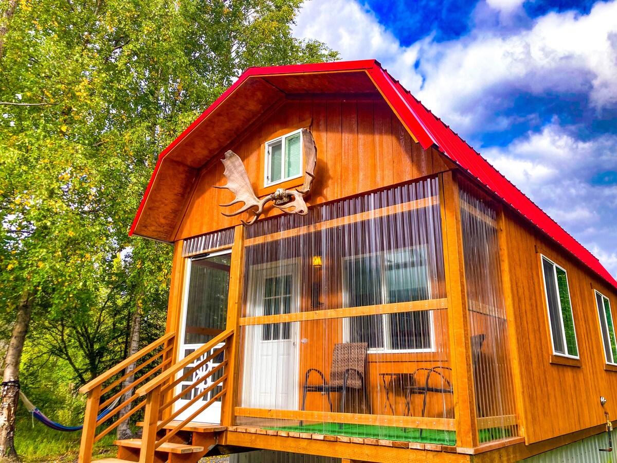 5 uniquely decorated cabins serve as your base for all your Alaska fun! Each cabin is 500 sq feet and has a small kitchen, bath with tile shower, one bedroom and a sleeping loft. Kenai river access for fishing a short walk from your cabin. 13 acres allows for the chance see wildlife from your porch while having coffee from the Keurig coffee maker. We also have 6 RV sites with full hookups. Dry camping. Laundry cabin with coin op washers and dryers. It also has an extra bath with 2 Showers.