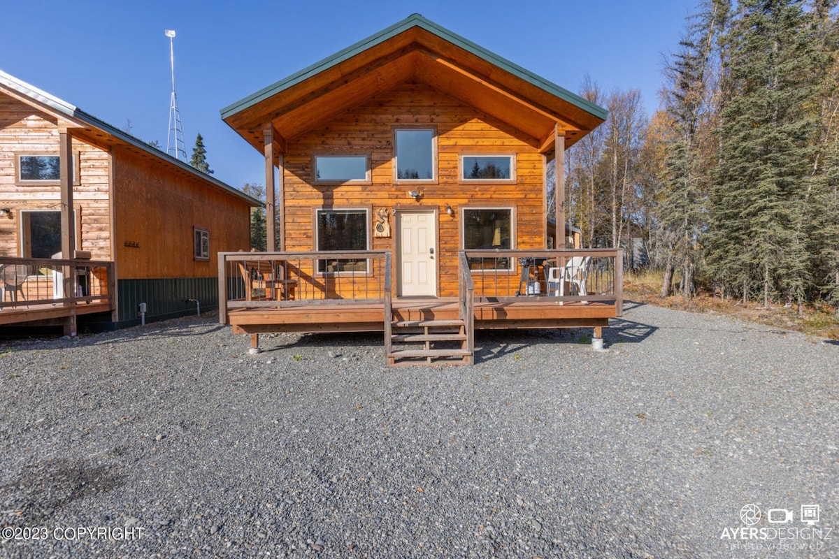 (The lower deck is temporarily closed for repairs but the upper deck and the gazebo are still open). Take it easy at this unique and tranquil getaway. Nestled on 16.7 acres of Alaskan land with access to a private lake. The perfect place to relax after a long day of adventure. (Property is shared with a main house, another cabin, and yurt) but there is plenty of space for privacy. Please please be certain of your booking dates. Cancelling reservations negatively impacts our small business.
