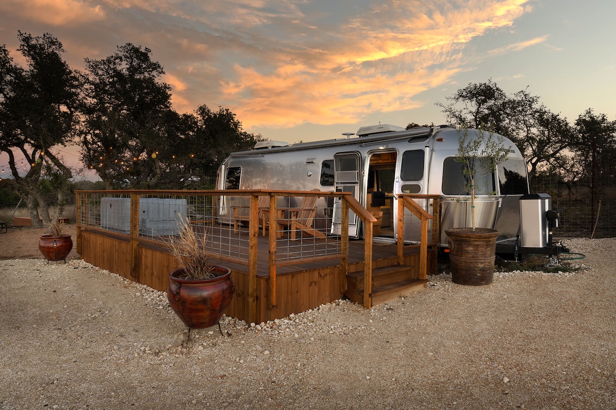 Experience the ultimate in luxury glamping at La Golondrina. Surrounded by rolling hills and beautiful countryside on a 10-acre working olive farm, this new 2022 Airstream is the perfect escape from the hustle and bustle of city life. With its stunning views and peaceful setting, you'll be able to relax and rejuvenate in no time. Step inside and you'll be greeted with a spacious and beautifully designed interior, complete with a comfortable queen sized bed, two TVs, and high speed WiFi.