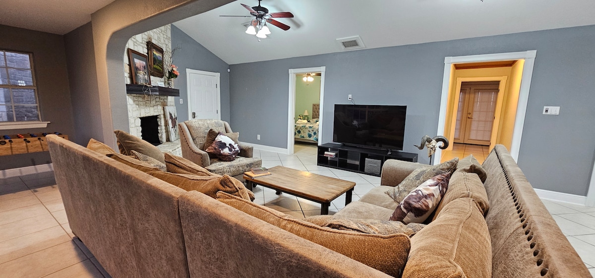 2 bedroom/2 bath guesthouse just minutes from downtown Boerne. Large game room with pool table and movie projector 120” screen with amazing surround sound and a 65”LCD. Step out to the firepit and huge pool, shared only between the two guesthouses. New small kitchen with all new appliances. We welcome pets with a $20 pet pet feeNO PITBULLS AND ONLY 1 LARGE DOG Unsupervised pets must be crated. Just added relaxing water feature, new pool volleyball net and basketball hoop Super fast wifi