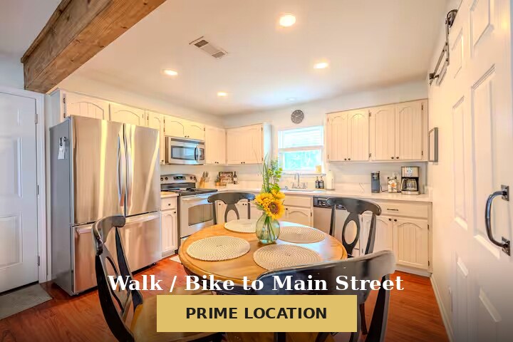 A charming home on a quiet street only six blocks from Main Street's shopping and restaurants. You can rest comfortably in a king or queen size bed and wake to enjoy the stocked coffee bar. If this is a working vacation, you will love the workspace and high speed wifi. While we're minutes away from River Road and its many dining options, you may decide to stay in and use the full kitchen. Either way you'll love relaxing on the large patio under the party lights. Dog friendly home.