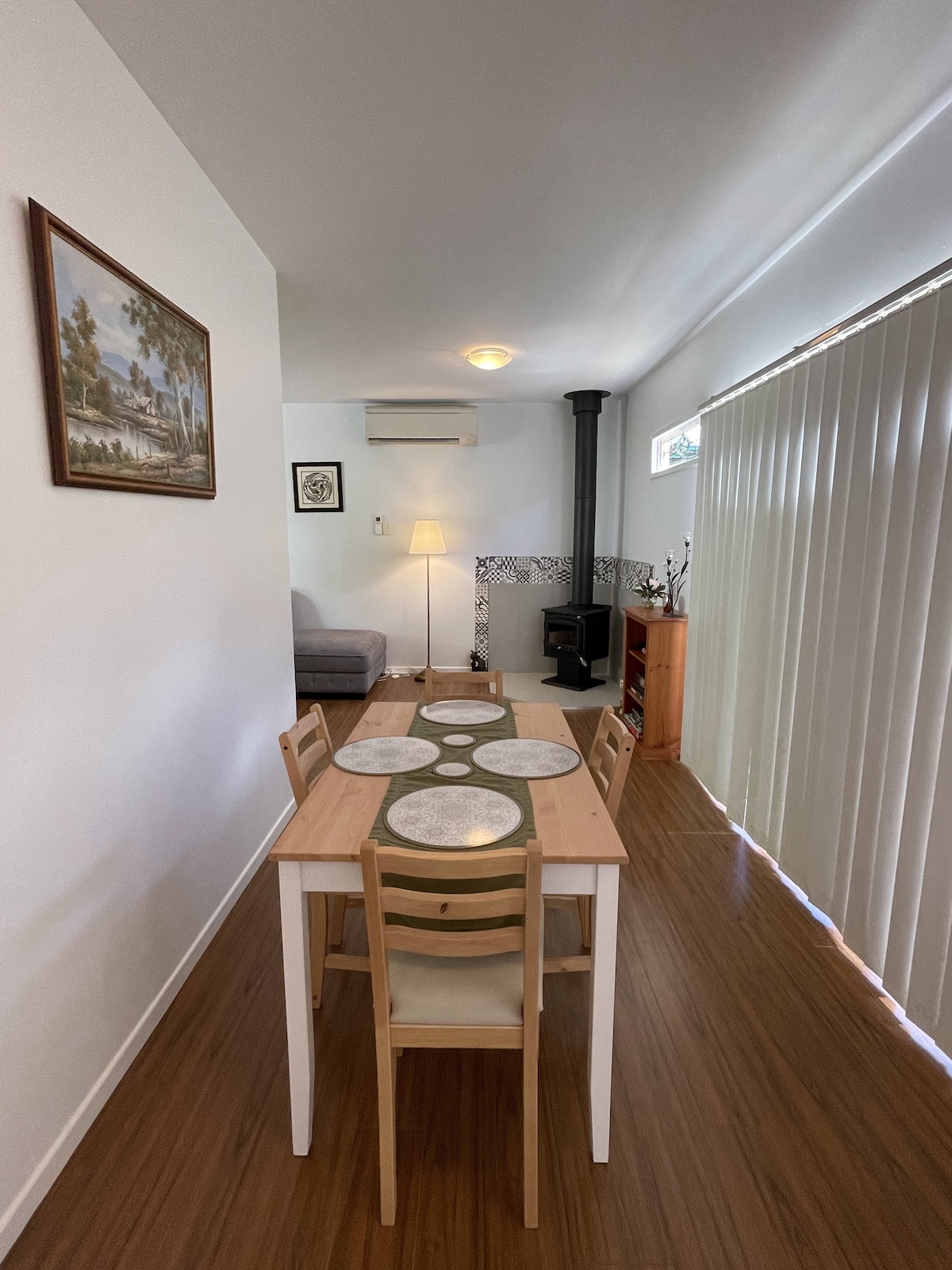 Charming and relaxing, this house will give you a chance to enjoy the picturesque natural surrounds. Please note, the house is old and far from perfect! The bathroom is the original. There is a King bedroom with TV, a Queen bedroom, and a bunk bed bedroom (double bed on bottom/single top). The fireplace keeps you warm in Winter, and two of the bedrooms are airconditioned to keep you cool in summer. Outdoor firepit area with wood is supplied Undercover fire table unavailable for use.