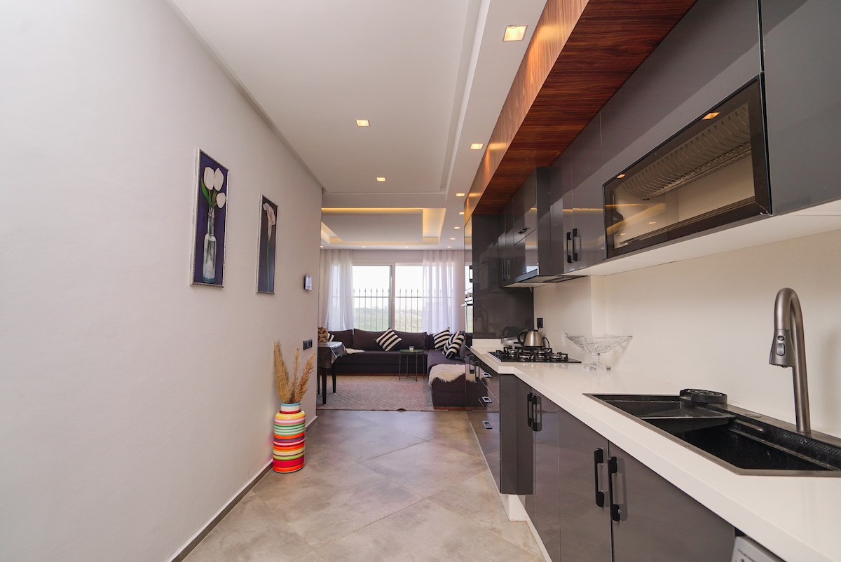 Bienvenue dans votre oasis moderne au cœur de Kénitra ! Appartement lumineux de 75m² avec salon confortable, Smart TV & Netflix, 2 chambres cosy, cuisine équipée et 2 salles de bains modernes. Grand balcon avec balançoire suspendue pour vos moments de détente. Idéalement situé : à 5 min à pied de la gare TGV, proche de Kénitra Mall, boulangerie, cafés et restaurants juste au pied de l’immeuble.