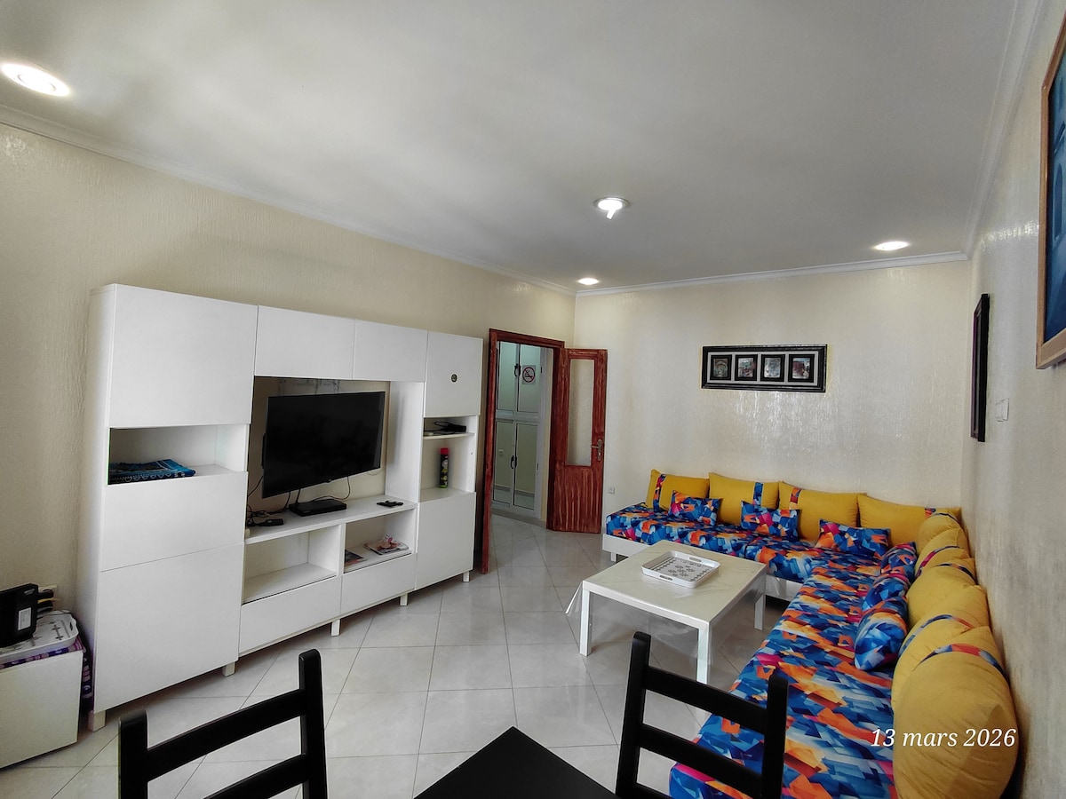 Magnifique appartement spacieux et entier situé au centre-ville de kenitra avec une belle vue sur le lac sebou, proche de toutes commodités ( restaurants/supermarchés). Composé d'un grand salon avec canapé et salle à manger, TV et climatiseur ainsi que wifi disponible. Vous y retrouverez aussi 2 chambres, une salle de bain et une cuisine bien équipée sans oublier un coin café avec une machine à café nespresso. C'est un appartement paisible avec un bon voisinage dans un cartier calme et sécurisé.