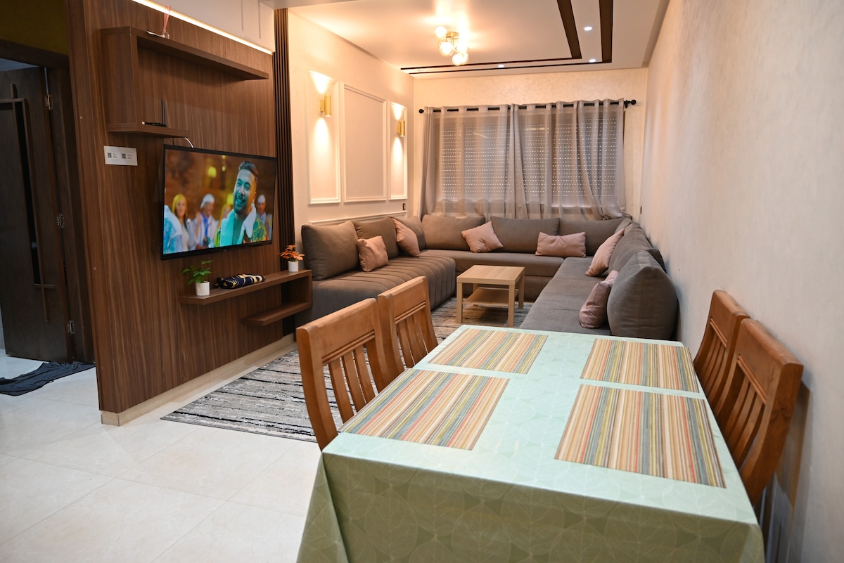 Bienvenue à Kénitra ! Cet appartement moderne de 2 chambres au 1er étage offre tout le confort pour un séjour agréable. Profitez d’un salon marocain élégant avec Smart TV, d’une cuisine équipée, d’une machine à laver et du Wi-Fi rapide. Situé dans un quartier calme, il est à 10 min en voiture de la plage de Mehdia et proche des commerces et restaurants. NB : les couples non mariés ne sont pas autorisés. Idéal pour familles, amis ou voyages d’affaires. Réservez dès maintenant !