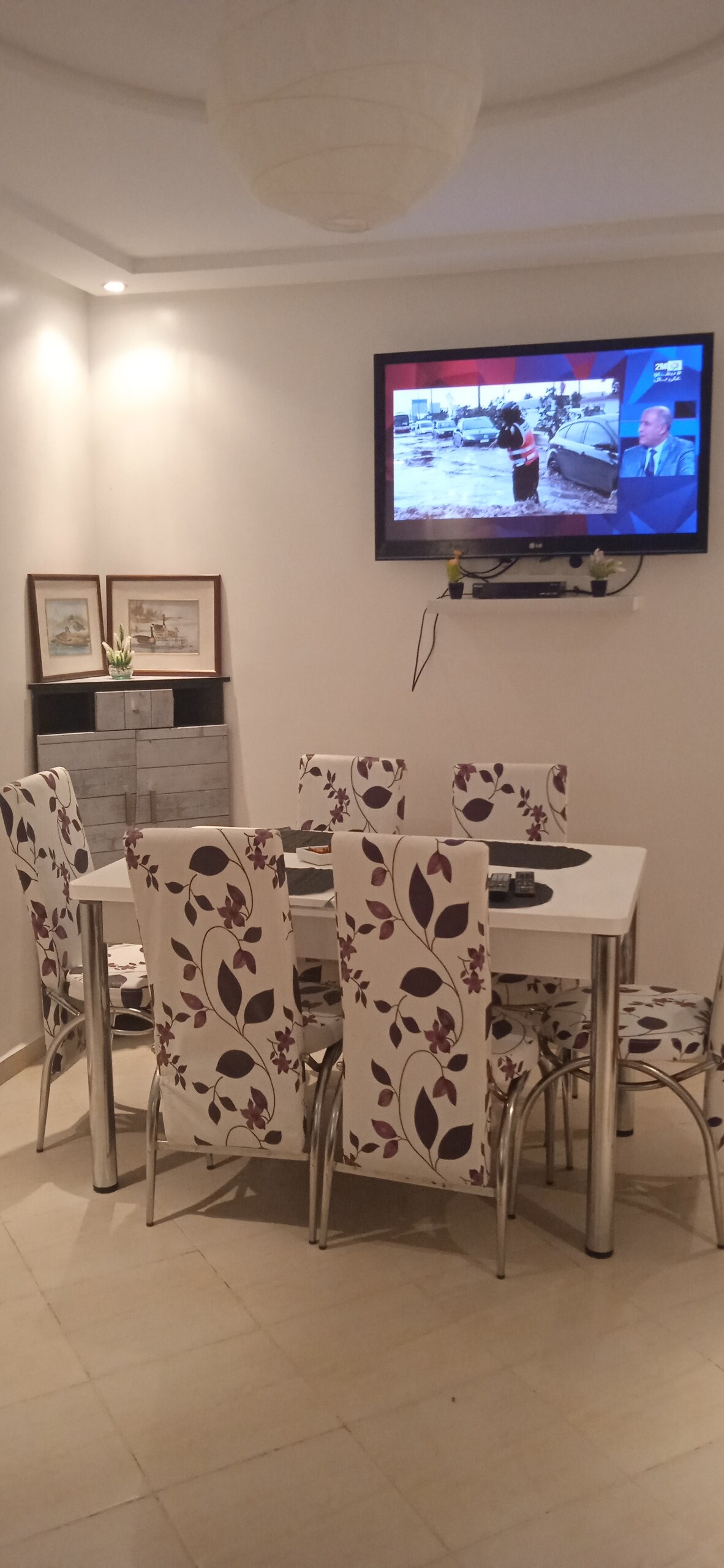 Magnifique appartement spacieux et entier situé au centre-ville de kenitra avec une belle vue sur le lac sebou, proche de toutes commodités ( restaurants/supermarchés). Composé d'un grand salon avec canapé et salle à manger, TV et climatiseur ainsi que wifi disponible. Vous y retrouverez aussi 2 chambres, une salle de bain et une cuisine bien équipée sans oublier un coin café avec une machine à café nespresso. C'est un appartement paisible avec un bon voisinage dans un cartier calme et sécurisé.