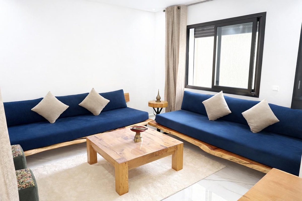 Bienvenue à Kénitra ! Cet appartement moderne de 2 chambres + une coure au 1er étage offre tout le confort pour un séjour agréable. Profitez d’un salon marocain élégant avec Smart TV+iptv, d’une cuisine équipée, d’une machine à laver et du Wi-Fi rapide. Situé dans un quartier calme, il est à 10 min en voiture de la plage de Mehdia et proche des commerces et restaurants. NB : les couples non mariés ne sont pas autorisés. Idéal pour familles, amis ou voyages d’affaires. Réservez dès maintenant !