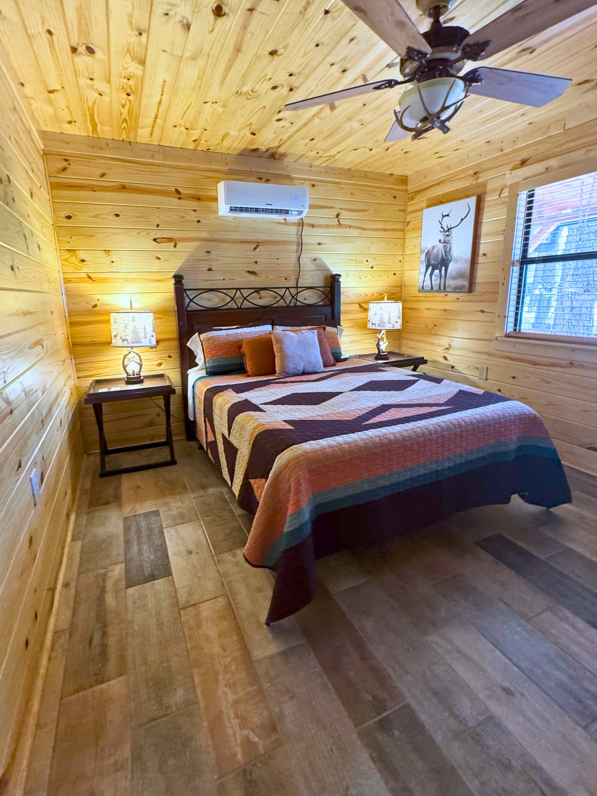 Right on the water of beautiful Lake Naconiche, just minutes from Nacogdoches and SFA, this rustic themed cabin features cozy bedding, a kitchenette, a double sided bathroom with walk-in glass shower, and a porch overlooking the lake with a fire pit. Our property is gated and includes a private boat dock, & additional fire pit and seating near the water. Whether you’re looking for a relaxing getaway, or wanting a cozy place to stay while on a fishing trip, this is the place for you.
