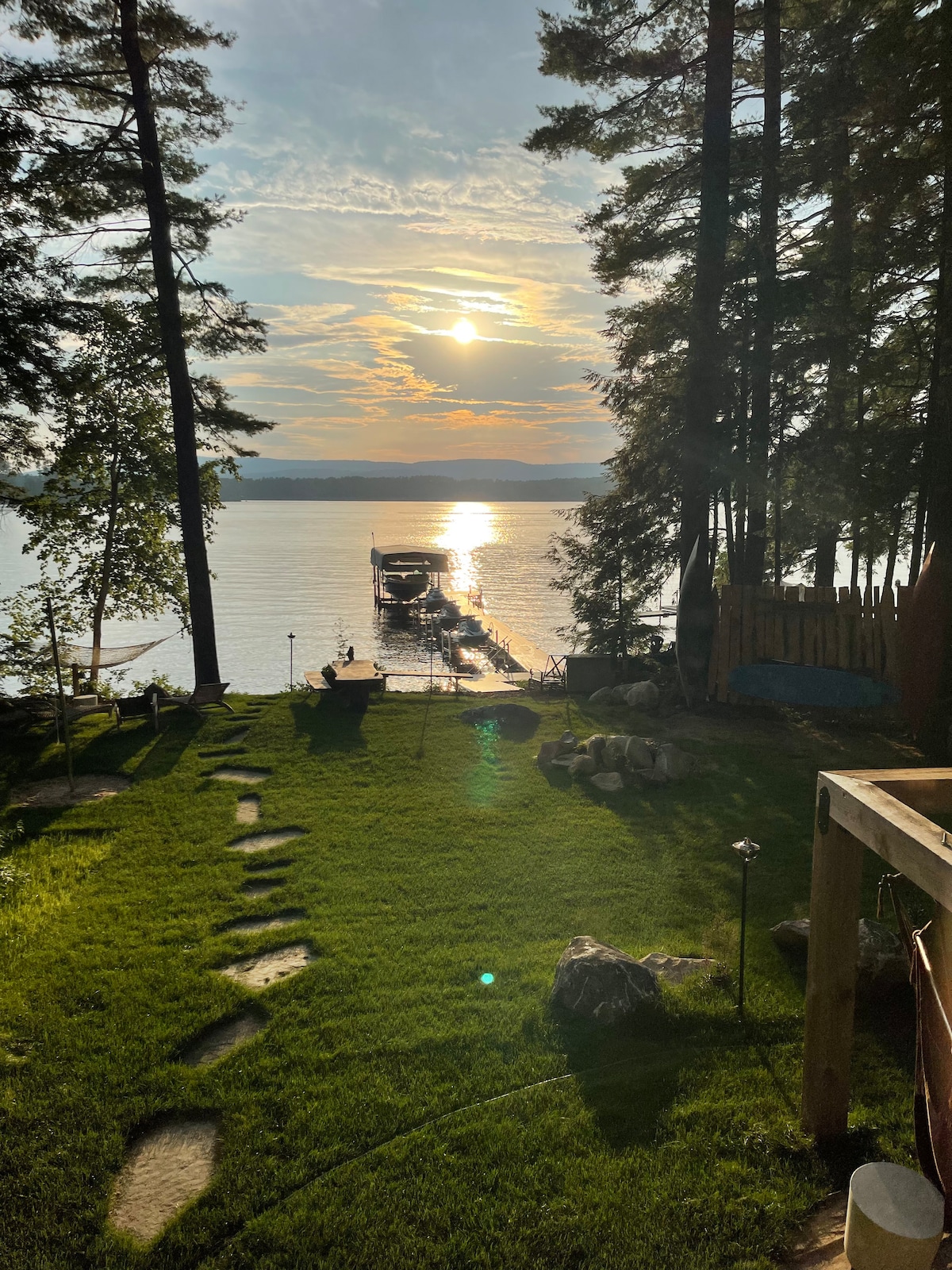 Welcome to the Lake House! 5 bedrooms. Access to a mooring. Full bathroom and kitchen with accessories. Bedrooms have locked doors & Wi-Fi. The house has a Deck and Docks, 8 foot by 10 foot floating Island, BBQ Grill. Lakeside Bon Fire Pit. Full bath, 30 feet from Lake! 2 entrances, 3 Kayaks, Fishing/Swimming. Nice neighbors including Camp Manitou, Matoaka and Somerset. Near Public Boat Landing & country store. I reside nearby, and will help with any issues.