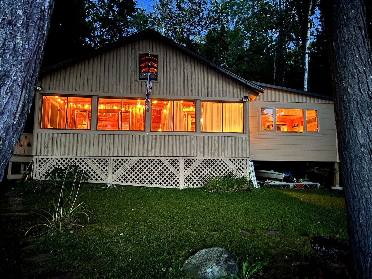 Brand new Cozy Cabin on a small 181 acre pond. Enjoy the cabin feel of knotty pine and a big country porch overlooking the water. Walk in access to the water or ice in the winter. Kayaking, canoeing, ice fishing, snowmobiling and more depending on the time of year. A peaceful location a mile down a private road but 10 minutes away from a grocery store etc. Eagles, loons and fish will be your neighbors as you are in the moment at Price's Point.