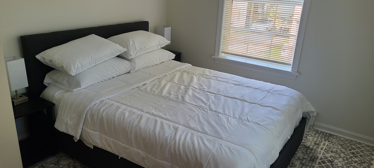 Centrally located modern guest home in Augusta, access points to Portland, Midcoast Maine, and Bangor. Spacious master bedroom with closet, additional bedroom, both bedrooms with queen size beds. Handicap bathroom equipped with grab rail and also handicap accessible shower with sit down bench. Many brand new amenities. 55 inch TV has Roku with access to Netflix , Disney Plus, and more! Strong WiFi with the ability to work remotely if needed and explore Augusta and surrounding area.