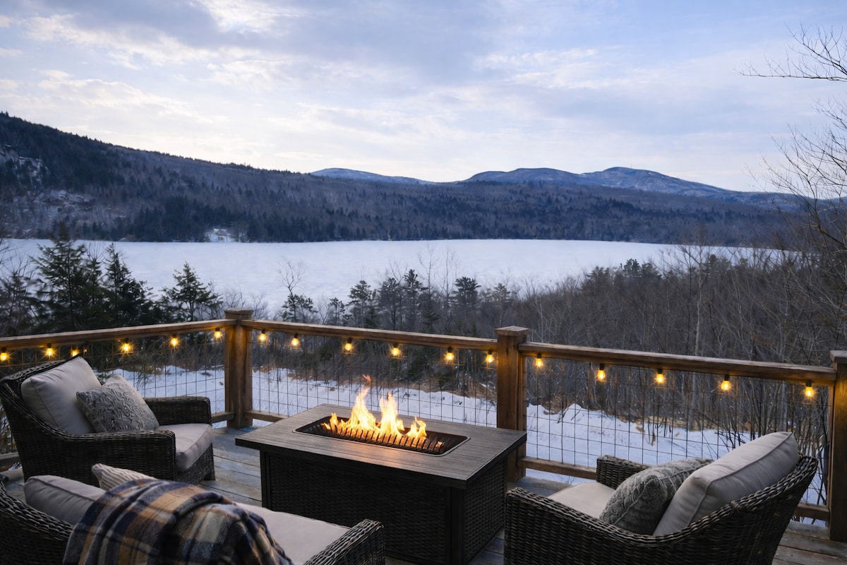 日落和湖景、剧院、热水浴缸、Xbox、柴火炉