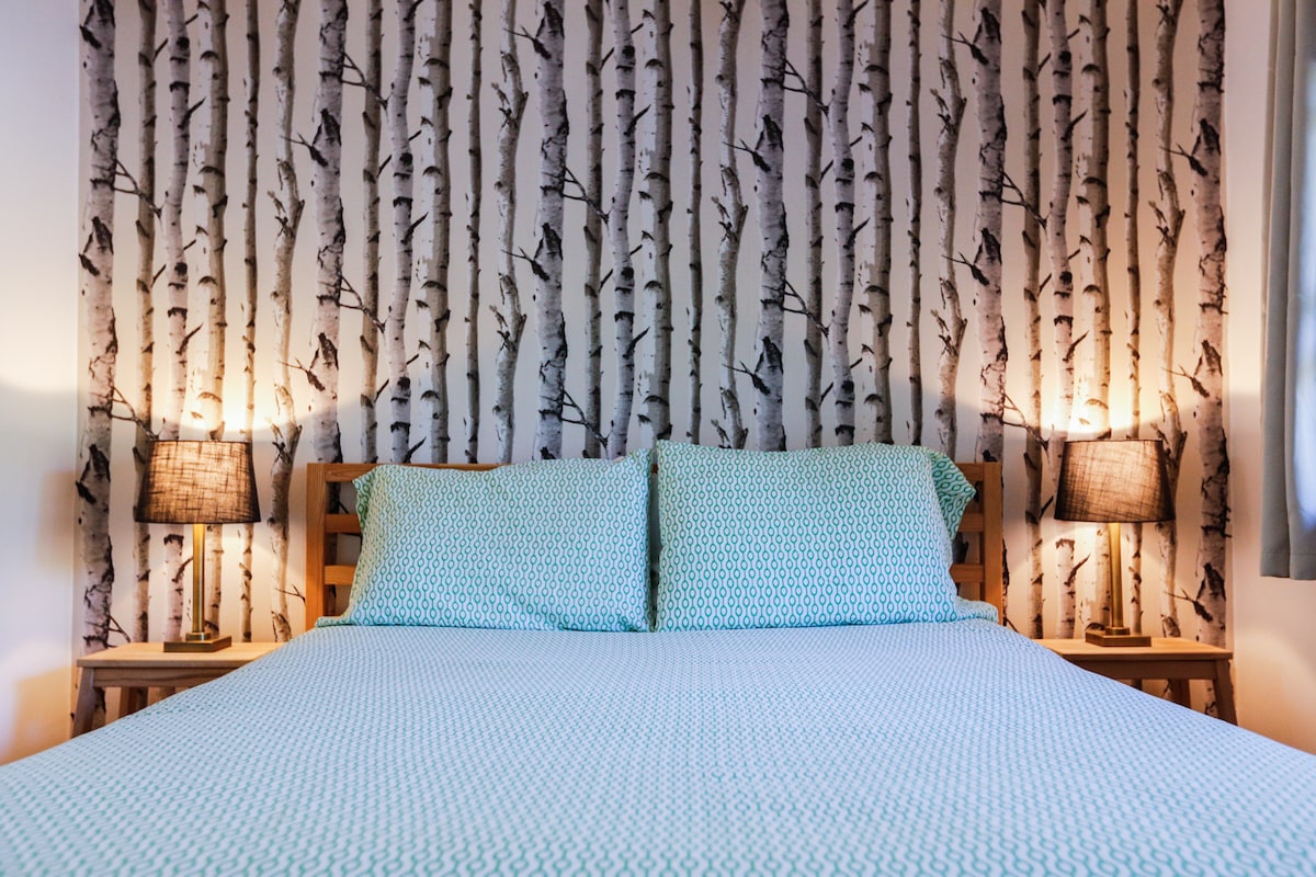 宽敞私密的加大双人床单间公寓,带壁炉
